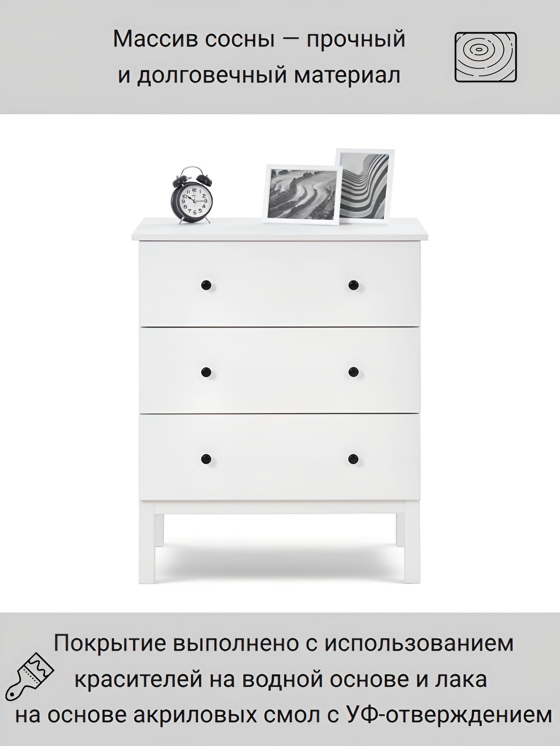 Ваши вещи всегда будут в порядке. У комода 3 вместительных ящика! Вы легко разместите в нем ваши вещи, и они всегда будут у вас под рукой.