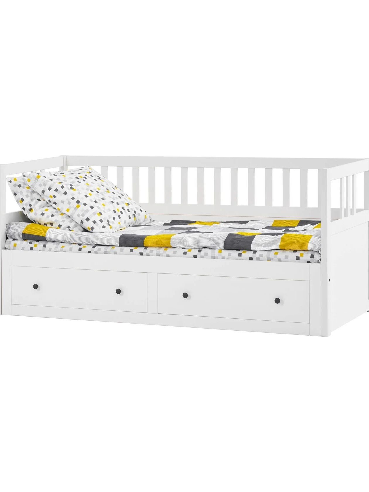 - Днем на кушетке ХЕМНЭС удобно сидеть, а ночью она легко превратится в односпальную или двуспальную кровать. В двух вместительных ящиках можно хранить одеяла, подушки и постельное белье. Отличное решение, особенно, если в комнате немного места.