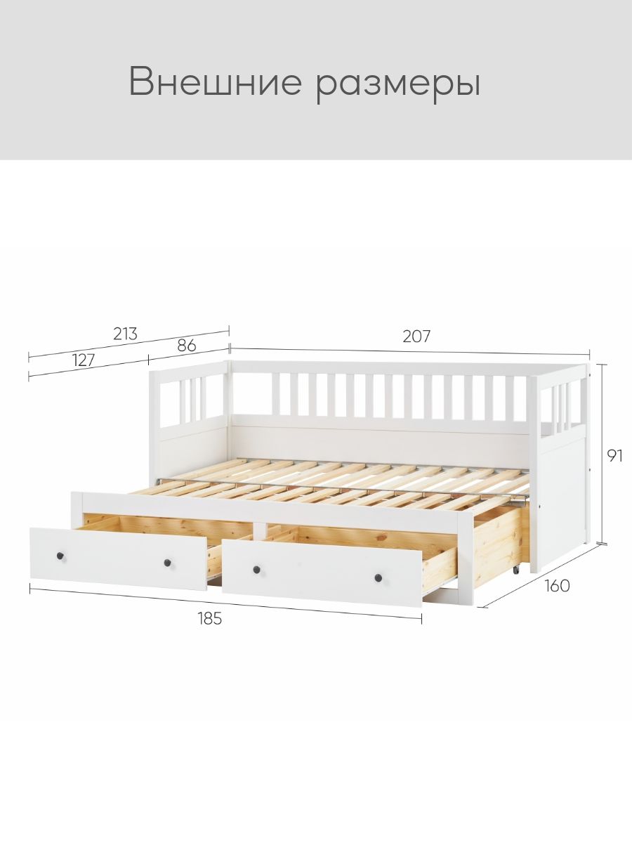 - Эта кушетка КЫМОР легко превращается в двуспальную кровать, для этого нужно просто выдвинуть основание и положить матрас. Раздвижная кровать.