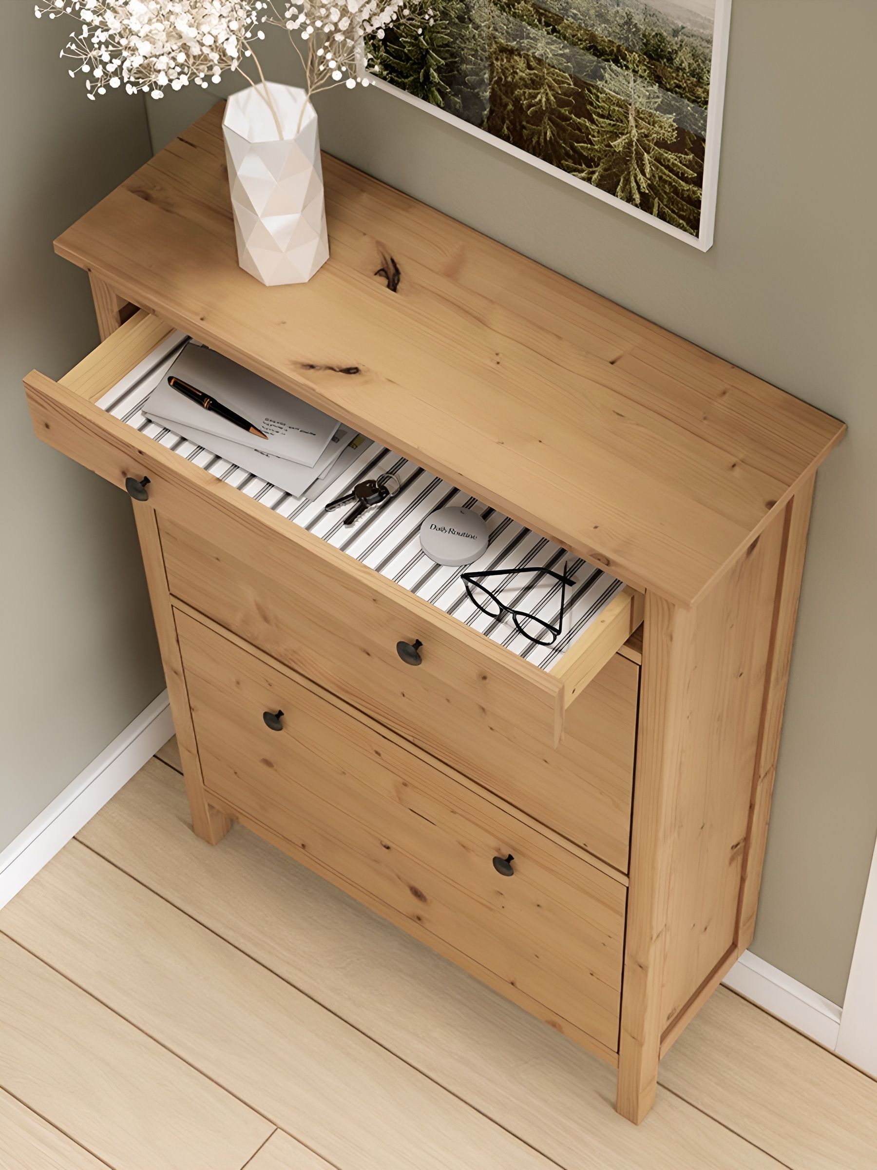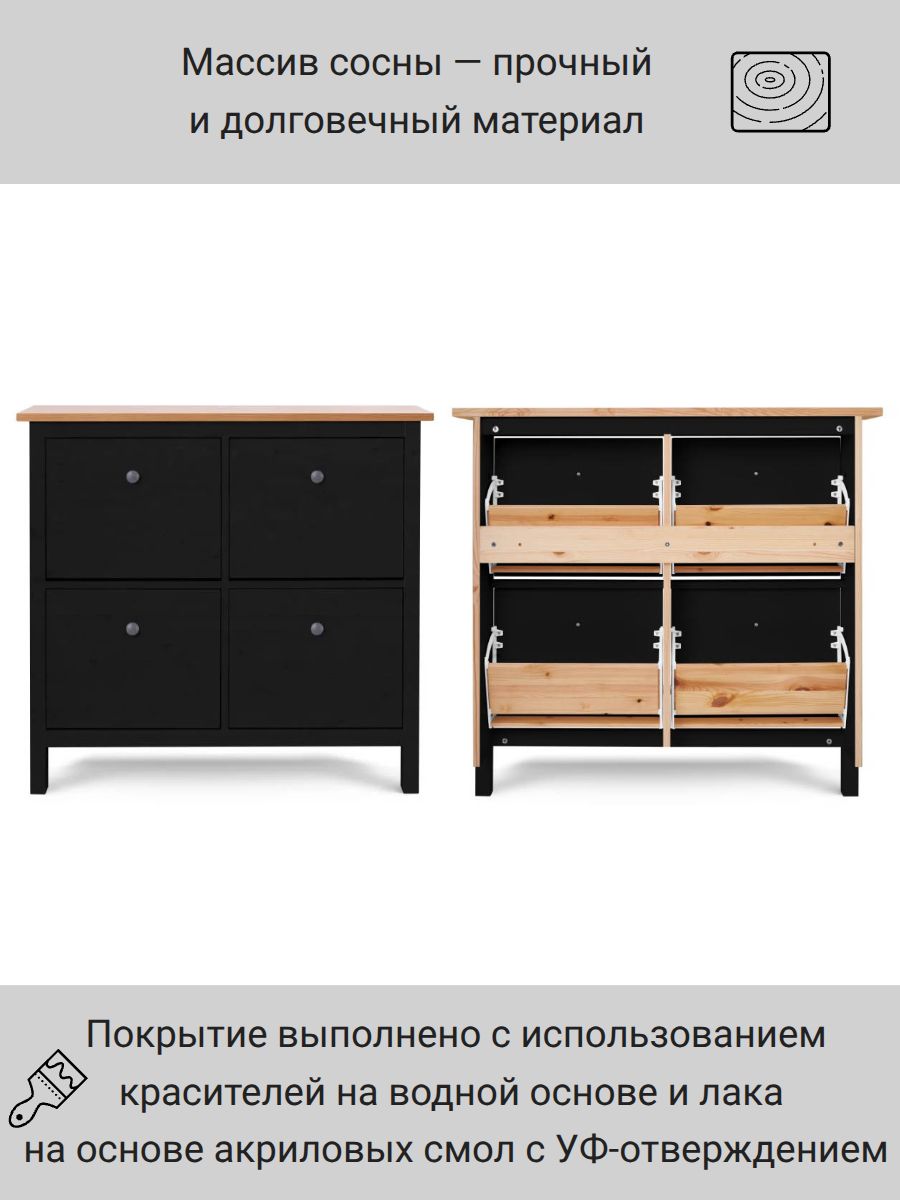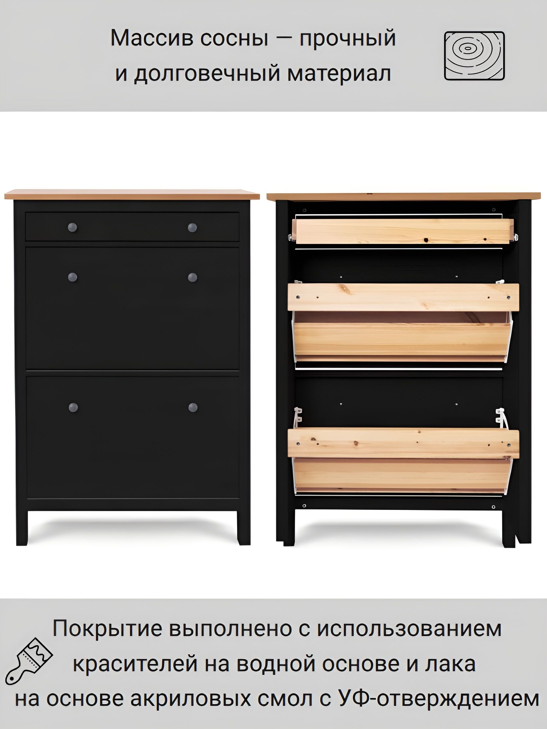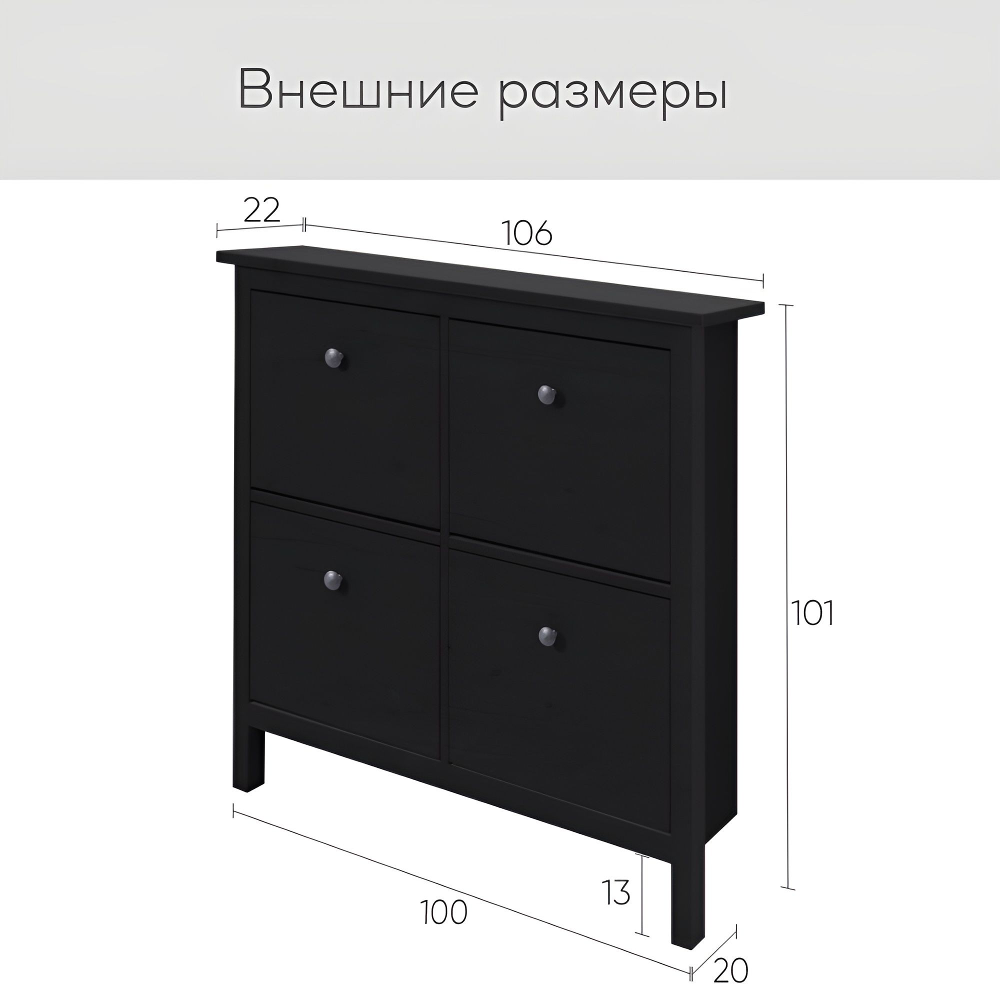 HEMNES – это известная серийная линия мебели от IKEA, которая славится своей прочностью и долговечностью. Обувница не только удобна в использовании, но и проста в уходе: гладкая поверхность легко очищается от пыли и грязи. Стильный дизайн и качественные материалы обеспечивают долговечность, а продуманная конструкция делает её идеальной для размещения различных типов обуви.