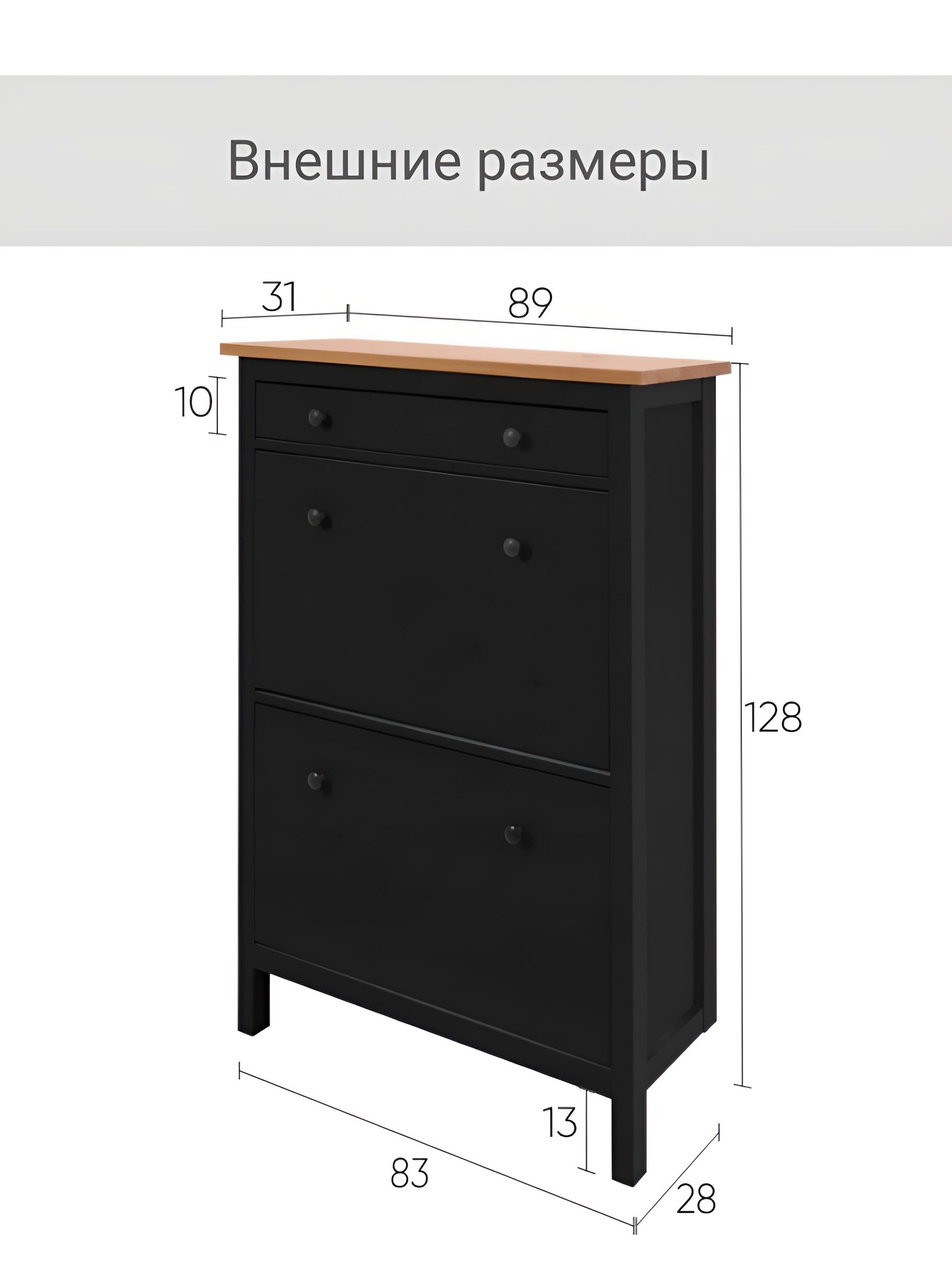 Обувница HEMNES IKEA– это стильное и функциональное решение для вашей прихожей. Выполненная в черном цвете с элементами светлого коричневого, она прекрасно впишется в любой интерьер, придавая ему уют и эстетичность. Размеры 89х127х30 см делают её компактной и удобной для размещения даже в ограниченном пространстве.