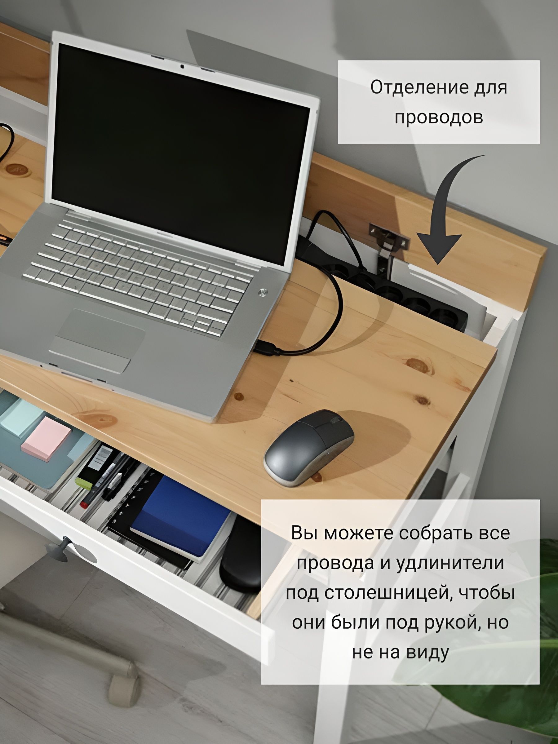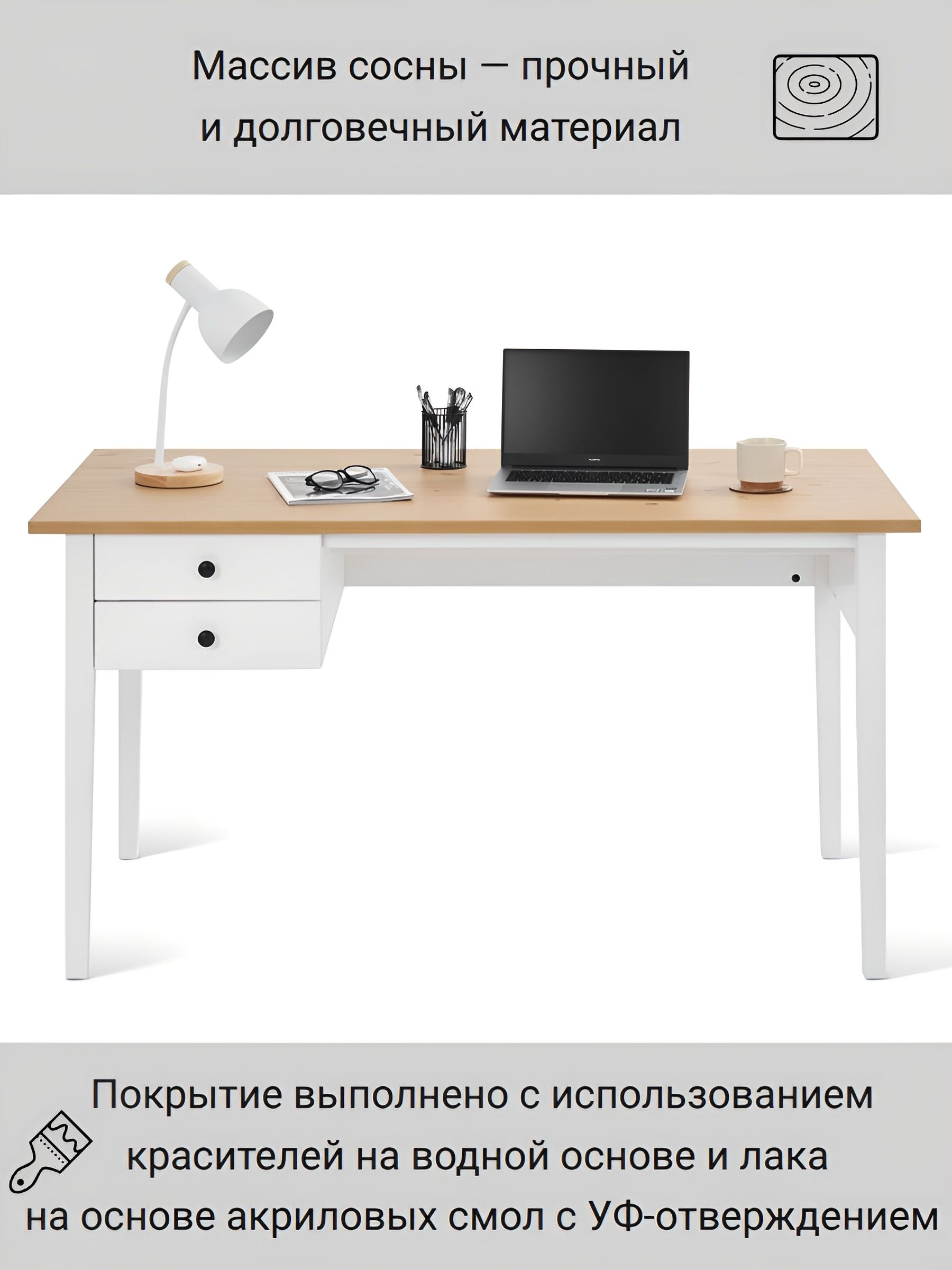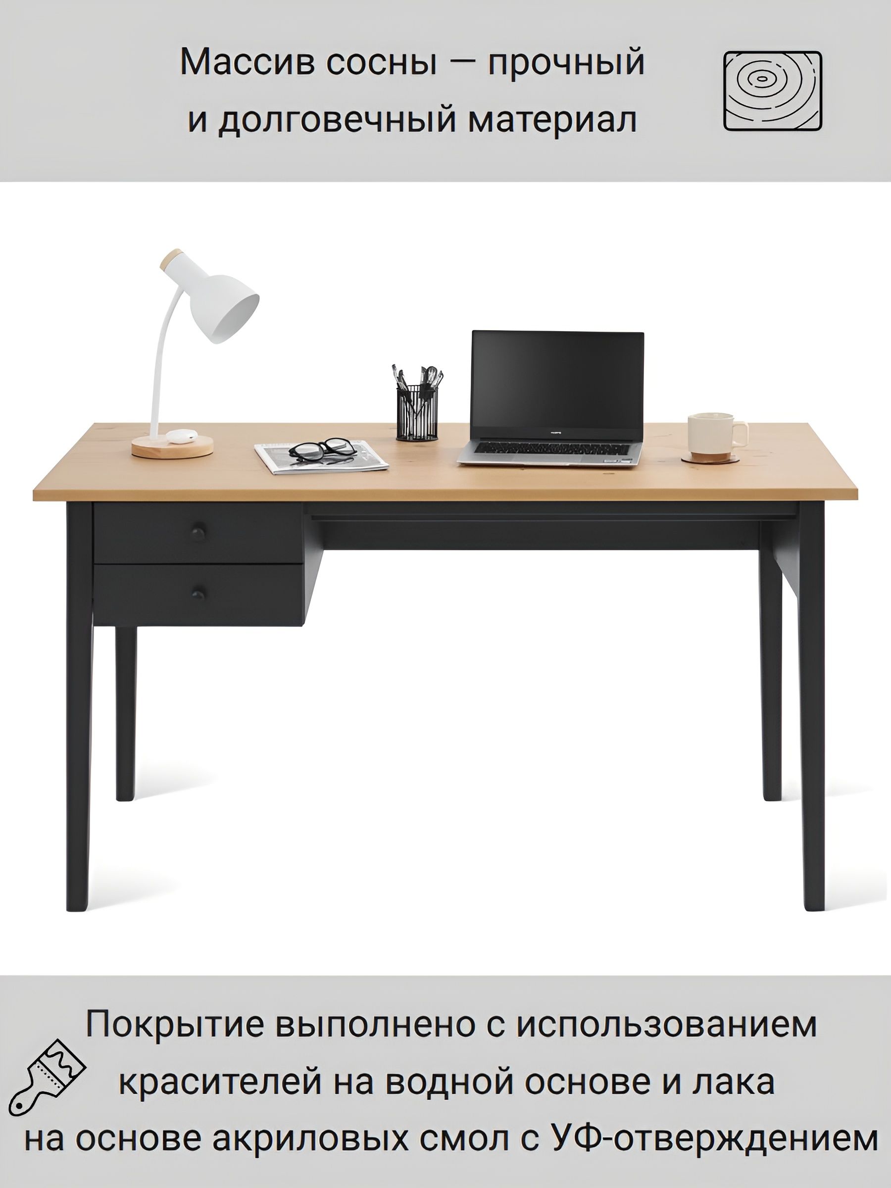 Удобная поверхность позволяет комфортно размещать на ней компьютер, книги и другие необходимые для работы предметы. Специально разработанный дизайн стола обеспечивает достаточно места для работы и дает возможность аккуратно организовать документы и принадлежности.