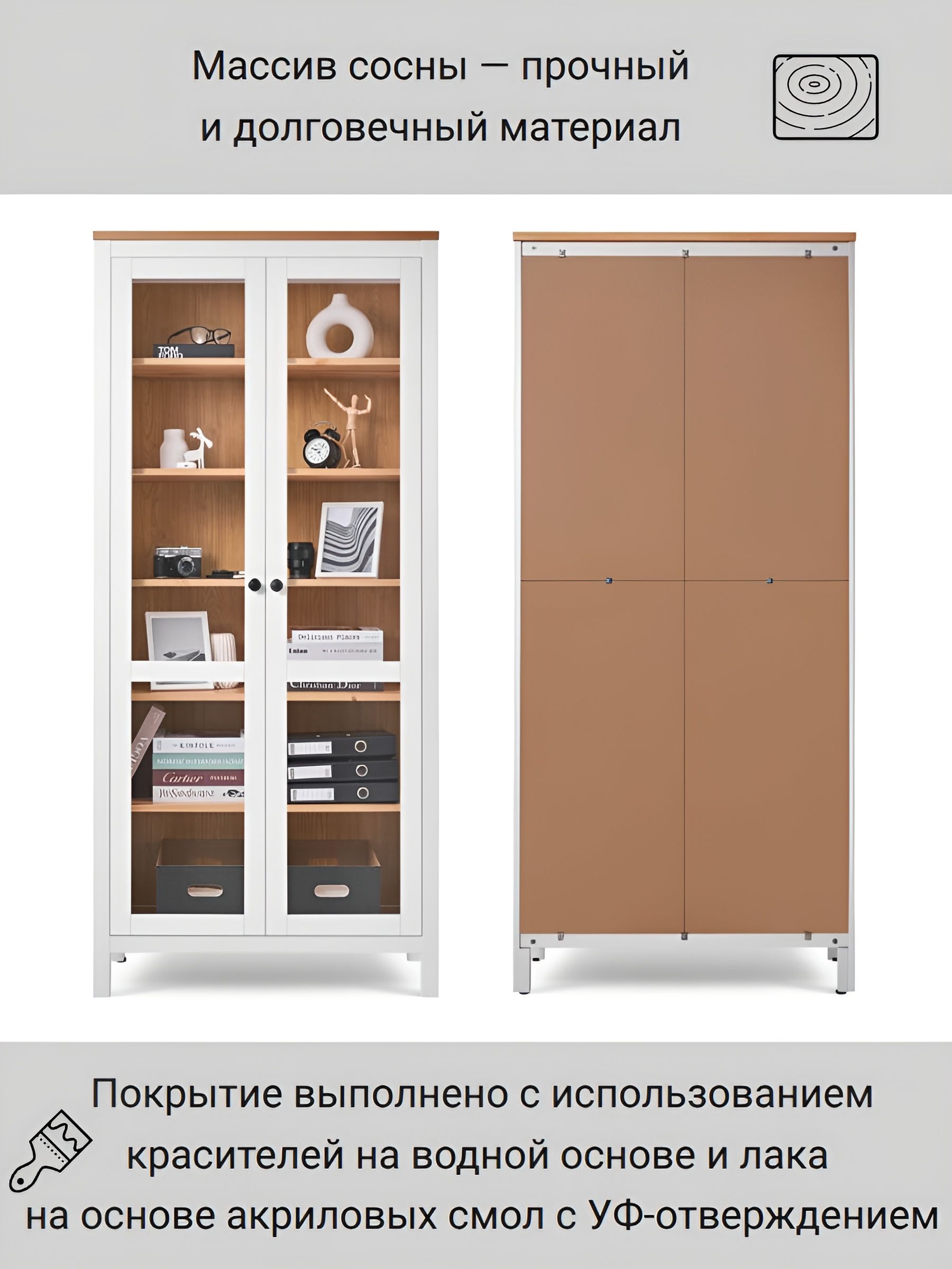 Шкаф КЫМОР с дверцами имеет элегантный дизайн, который легко вписывается в различные стили интерьера, от классического до современного. Благодаря открытым полкам вы можете демонстрировать свои любимые книги, фоторамки или декоративные элементы, а закрытые ящики позволят скрыть менее эстетичные предметы.